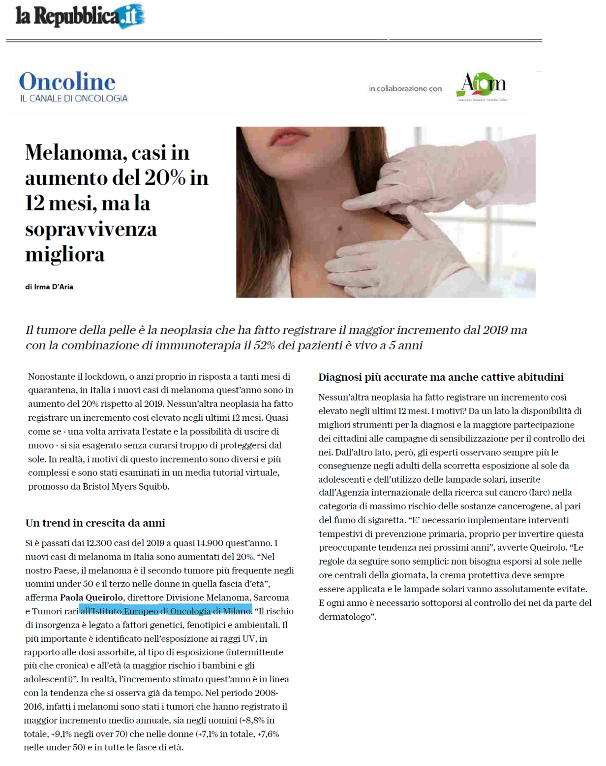 melanoma casi in aumento